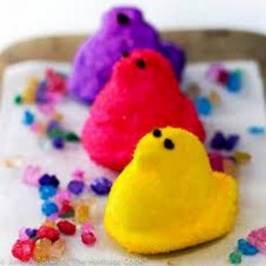 Côté sucré, il y a très peu d’œufs en chocolat. Ce que les Américains adulent ce sont les, des guimauves en forme de poussins que le lapin de Pâques cache discrètement dans le jardin.