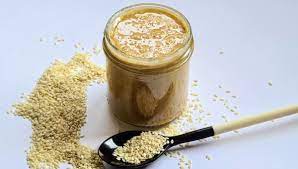 Le tahini, tahin, tahina, téhina ou tahiné, est une crème de sésame, préparation orientale faite à partir de graines de sésame broyées, avec un peu d’eau, jusqu’à obtenir une pâte lisse. Le tahini est très riche en calcium et en phosphore, et apporte 590 kcal/100 g.