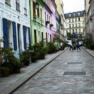 La façade colorée en vert anis et une vigne peinte du 21 rue Crémieux 75012