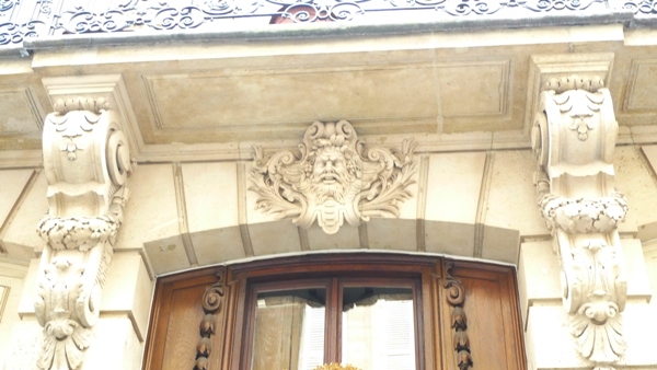 Une tête d’un barbu veille au dessus du portail du 17 rue de Grenelle 75007