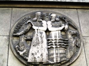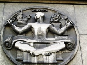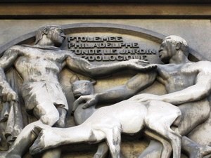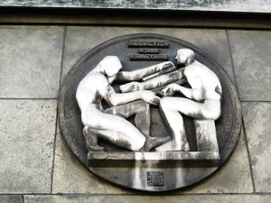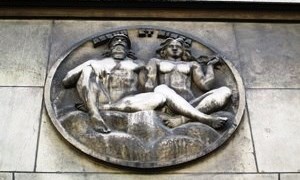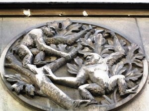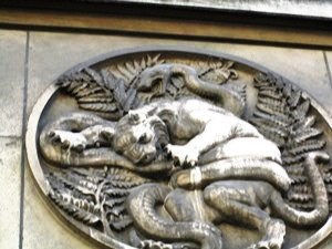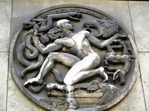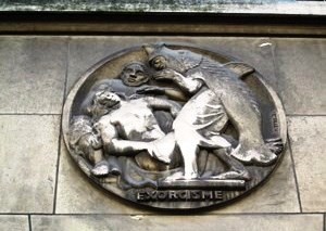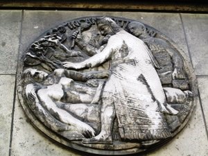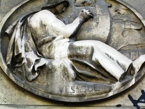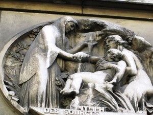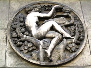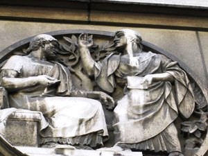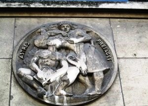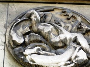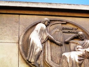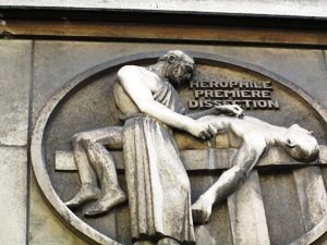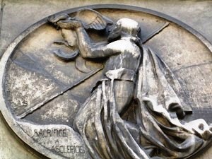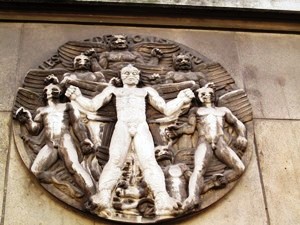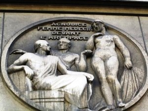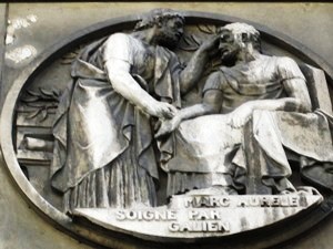 Une série de sculptures incluses dans des médaillons fixés sur la façade de la Faculté de Médecine 45 rue des Saints-Pères 75006 Paris