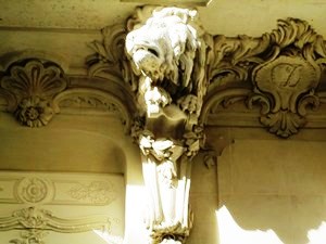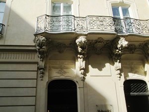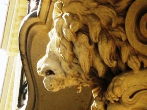 Des têtes de lions supportent un balcon au 6 rue des Saints-Pères 75006