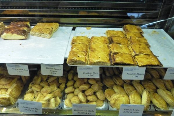 Le rayon traiteur est bien fourni: au hasard, crabe farci, matoutou de crabe ( préparation de crabe de terre ), féroce d’avocat ( recette à base de morue et de condiments épicés et relevés ), poulet boucané, Vivaneau sauce passion, fricassé de chatrou (poulpe), gratin de christophines, légumes -pays (banane, igname, dachine) qu’une longue liste de délices à retrouver ou à découvrir.