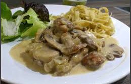 La fricassée de volaille à l’ancienne est une préparation de de la volaille, détaillée et sautée au beurre sans coloration, cuite avec mouillement d’un fond blanc et liée à la crème épaisse.