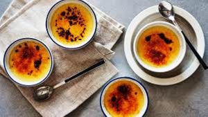 Les divers ingrédients utilisés pour réussir la recette sont : crème liquide entière, lait entier, jaunes d’œufs, sucre en poudre, café soluble ou expresso bien serré, cassonade pour la caramélisation…