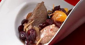 Les divers ingrédients utilisés pour réussir la recette sont : oignons, cranberries sèches (Ocean Spray), abricots secs, épaule ou de gigot d’agneau, miel liquide, jus de cranberries, huile d’olive, petits morceaux de cannelle, gingembre frais, sel, poivre…