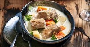 Les divers ingrédients utilisés pour réussir la recette sont : bouquet de coriandre, carottes, quasi de veau, lait de coco, bel oignon, branche de céleri, bouquet garni, jaune d’œuf, citron vert, huile d’olive, Maïzena, sel, poivre du moulin…
