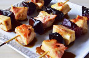 Brochettes de volaille aux nectarines et vinaigre balsamique
