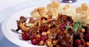 Le civet de chevreuil est sublimé par une sauce et une garniture aux cranberries et aux girolles. Un délice à savourer cet automne.