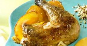 Découvrez la recette des cuisses de pintades au coulis de mangue.