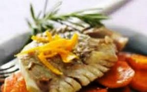 Les divers ingrédients utilisés pour réussir la recette sont : carottes, oranges, lieu noir, huile d’olive, brins de romarin, sel, poivre…