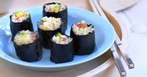 Les divers ingrédients utilisés pour réussir la recette sont : pomme granny, pamplemousse, filet de daurade, huile d’olive, citron vert, quinoa, vinaigre de riz, feuilles d’algues nori…