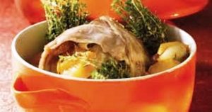 Découvrez la recette du râble de lapin farci aux pêches et au thym frais.