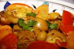 Les divers ingrédients utilisés pour réussir la recette sont : abricots secs, dattes, épaule d’agneau, désossée, gousses d’ail, coriandre, vinaigre de xérès, quatre-épices, huile d’olive, eau, gros sel, semoule, beurre, curcuma, sel, poivre…