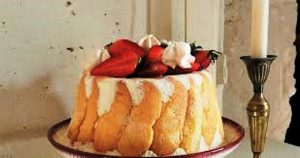 Les divers ingrédients utilisés pour réussir la recette sont : jaunes d’œufs, feuilles de gélatine, sucre vanillé maison, biscuits cuiller maison, fraises, sucre glace, lait, crème liquide  entière, Kirsch…