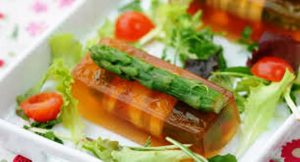 Les divers ingrédients utilisés pour réussir la recette sont : courgettes, haricots verts, petits pois et carottes surgelés, vert de côtes de blettes, feuilles de gélatine, crème fraîche…