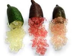 Parce que sa pulpe ressemble à des œufs de caviar et que son goût est légèrement citronné, ce fruit porte le nom de citron caviar. Ce fruit se trouve essentiellement en Australie. Il se mange en confiture ou tout simplement frais si vous aimez le citron.