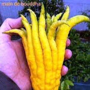 Ce fruit asiatique porte ce nom, car sa forme très particulière ressemble à une main bouddhiste. Sa chair est très peu présente et lorsqu’il y en a, elle possède un délicat goût de violette. Le fruit jaune est plus souvent utilisé pour cuisiner les poissons en marinade ou encore les salades.