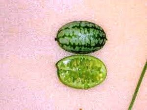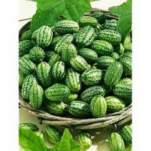 Plus connu sous le nom de « concombre à confire, le melothria scabra ressemble à une petite pastèque ovoïde. Son goût est quelque peu amer et il se consomme cru en salade ou encore comme condiment, au même titre que les cornichons.