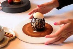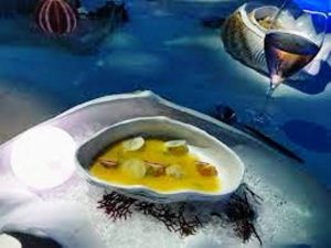 Parmi ces créations insolites, on retrouve de l’eau de tomate façonnée en boule de neige, du blanc de pigeon à la cire d’abeille et de la cervelle d’agneau émincée devant les convives.