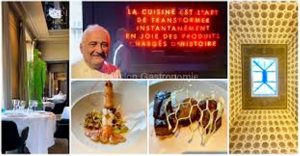 Le restaurant dispose d’une cave de 10 000 bouteilles et milite sur l’exigence de ses accords mets-vins. Ses éléments de menu inspirent l’admiration et la perplexité.