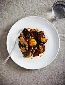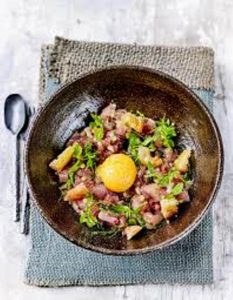 Œufs mollets, sot-l’y-laisse, patate douce et châtaignes