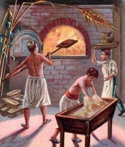 Osiris apprit aux hommes à cultiver le blé, à faire la farine et préparer le pain, c’est pourquoi le pain fut toujours considéré comme divin et sacré par les égyptiens.