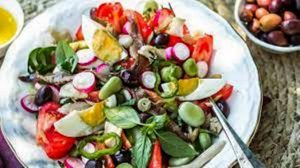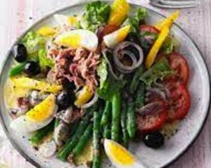 La salade niçoise est une spécialité culinaire traditionnelle de la cuisine niçoise, à ce jour répandue dans le monde entier sous de multiples variantes et adaptations. Elle constitue l’une des principales entrées des cuisines provençale et méditerranéenne, voire un repas à part entière.