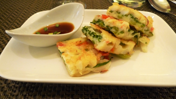 J’ai choisi en entrée HEMUL PAJEON, soit 4 galettes de fruits de mer à la ciboulette, je déguste c’est agréable,