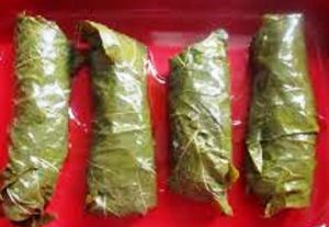 Les divers ingrédients utilisés pour réussir la recette sont : filets de merlan, mélange sel, citron séché, poivre, feuilles de vigne en saumure, huile d’olive…