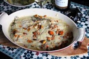 Les divers ingrédients utilisés pour réussir la recette sont : filets de merlan, crevettes grises, moules de bouchot, vin blanc sec, branches de thym, feuille de laurier, beurre, farine, jus de citron, crème fraîche épaisse, sel, poivre…