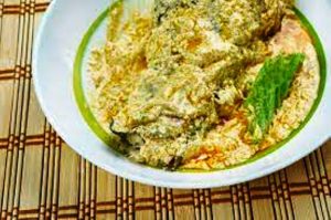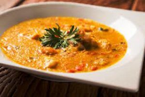 Les ingrédients utilisés pour cette recette du curry birman de poissons sont: poissons de type cabillaud, safran des indes, ail séché, oignons hachés, grosses tomates, huile, poudre de gingembre, poudre de piment, sauce de poisson, bulbes d’oignons…