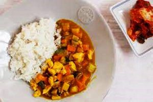 Les ingrédients utilisés pour cette recette du curry japonais sont: blanc de poulet, oignons, pommes de terre, carotte, huile végétale, eau, riz ronds japonica…