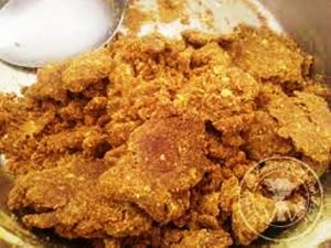 Lorsqu’on achète le mélange dans le commerce, il se présente sous forme de plaquettes avec des carrés à casser (un peu comme du chocolat) pour préparer la sauce. Ces carrés seront tout simplement mélangés à de l’eau pour former un roux de sauce. Car le mélange contient de la farine (souvent de blé) qui lui donne une consistance assez épaisse.