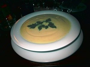 J’ai choisi un velouté de panais aux poires, c’est fort chaud, un arôme agréable se dégage, un très bon goût , un beau mariage de saveurs.