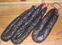 La préparation est ensuite mise dans un boyau (menu de porc) pour former une saucisse qui est chauffée de manière à coaguler les protéines du sang et obtenir la couleur typique rouge-brun. Au refroidissement la gélatine de la couenne se solidifie davantage et rend la saucisse plus ferme, sa composition rappelle l’estomac de porc farci.
