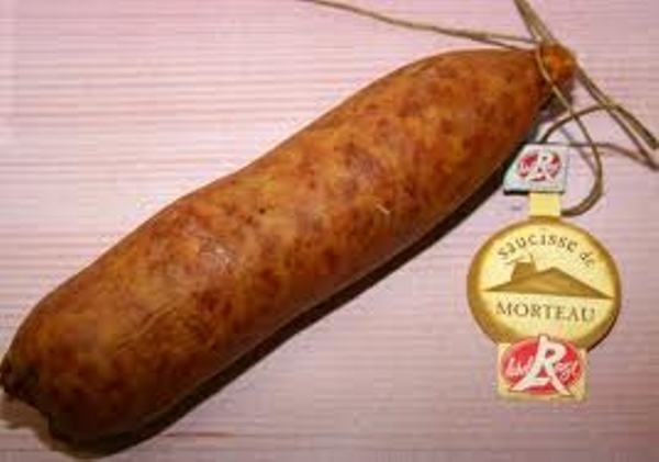 La Saucisse de Morteau, fumée, avec son bâtonnet typique, appelée localement « bonne saucisse », c’est un des classiques de la cuisine franc-comtoise. Une variante, beaucoup plus grosse, est appelée un Jésus.