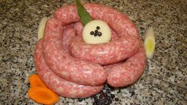C’est une grosse saucisse en forme de jésus qui présente l’originalité de mélanger chair de porc (comme les saucisses) et tripes (comme les andouillettes).