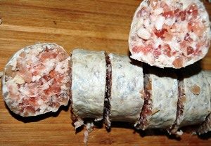 On la surnomme la saucisse du cousin parce que la tradition voulait que l’on offre un présent au cousin venu donner un coup de main le jour de la tuade du cochon.