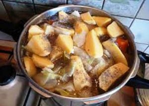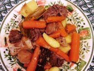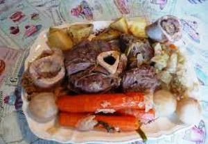 Les ingrédients de cette recette sont : plat de côte de boeuf, paleron de boeuf, gite, os de jambon Corse, jarret de porc, os à moelle, poireaux, carottes, gros oignon, chou vert , branche de cèleri, gousse d’ail, grosses pommes de terres, navets, bouquet garni de thym laurier, sel, poivre…
