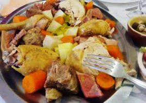 Le pot-au-feu catalan : Il associe du lapin ou du poulet à de la poitrine de porc, sans oublier le jambon de pays, le chorizo et les pois chiches pour la petite touche ibérique. On le sert avec des pains de viande de veau.