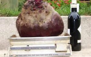 Une betterave géante a été récoltée par Jamie Courtney-Fortey, Gareth Fortey, Marjorie Fortey et Kevin Fortey. Ce record fait suite à celui d’Ian Neale, toujours au Royaume-Uni, qui avait atteint 23,4 kg jusqu’en 2001.