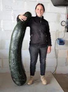 En Angleterre, une courgette mesurant 1,35 m et pesant 9,2 kg fut récoltée en 2019. Sa longueur impressionna tous les visiteurs du concours de potagers.