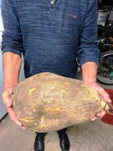 Au Japon, en 2017, une patate douce atteignit 4,8 kg. Sa peau orange et sa chair tendre étaient si grandes qu’il fallait deux personnes pour la transporter.