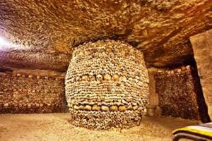 Ossuaire souterrain rassemblant les ossements de plus de 6 millions de Parisiens, aménagé dans d’anciennes carrières.