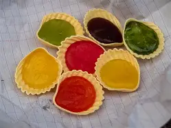 Une présentation dite « soucoupe » voit ensuite le jour. Elle est constituée d’une grande gélule en pain azyme coloré, munie d’une petite paille en plastique.