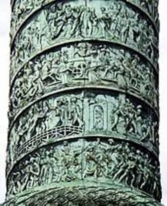 S’enroulant en une spirale continue (22 révolutions) jusqu’au sommet, ce décor long de 280 m est composé de 425 plaques de bronze constituant 76 bas-reliefs.