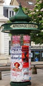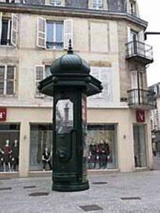 À Paris en 1839, le préfet de la Seine Gabriel Delessert autorise l’installation des « colonnes moresques » : l’affichage municipal est placardé sur un panneau de bois adossé à l’extérieur des urinoirs, édicules urbains installés par la ville.