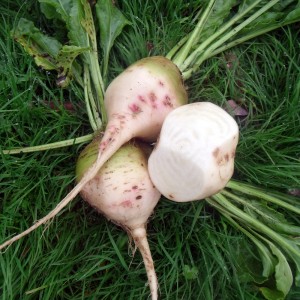 La betterave Blanche Albina Vereduna a une racine ronde, blanche, tendre.