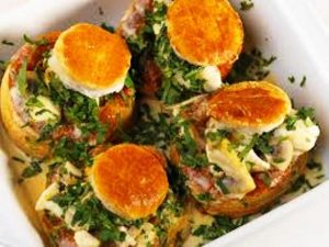 Souvent servi en entrée, cette entrée est composée d’une croustade en pâte feuilletée avec à l’intérieur des morceaux de viande (volaille, veau, jambon), des champignons, et une sauce épaisse composée de 3 sauces (béchamel, velouté, blanche).